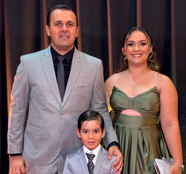 - Prefeito Aldo Andrade ao lado de sua esposa, Flávia Thaysa, e seu filho Arthur, durante solenidade de posse – Foto: divulgação