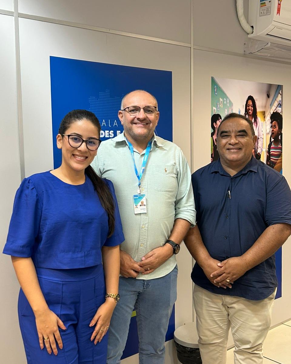 Marcos e Milena estiveram juntos com o deputado estadual Taciano Diniz (União Brasil) em reunião na FUNASA, SUDEMA, GIGOV (Gerência Executiva de Governo da Caixa Econômica Federal).