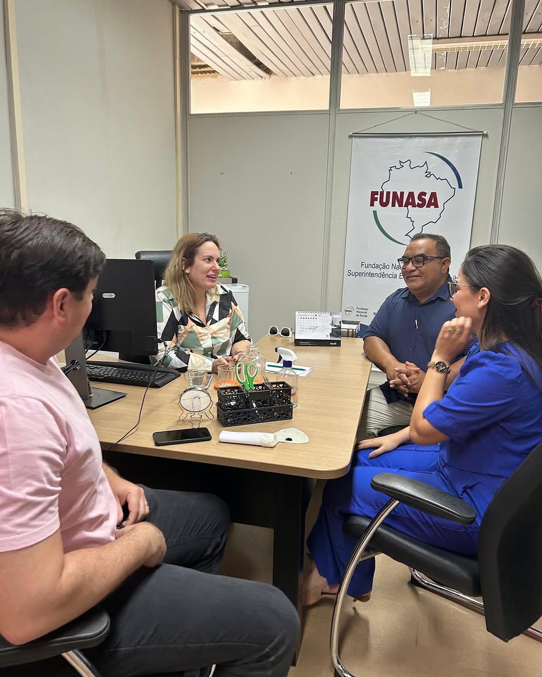 Marcos e Milena estiveram junto com o deputado estadual Taciano Diniz (União Brasil) em reunião na FUNASA, SUDEMA e GIGOV (Gerência Executiva de Governo da Caixa Econômica Federal)