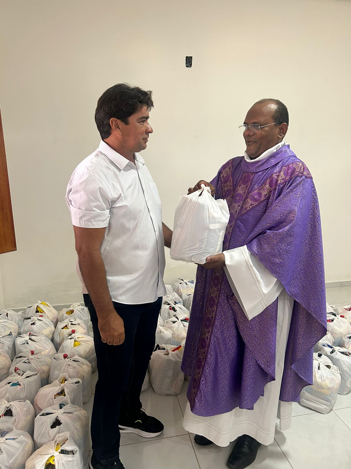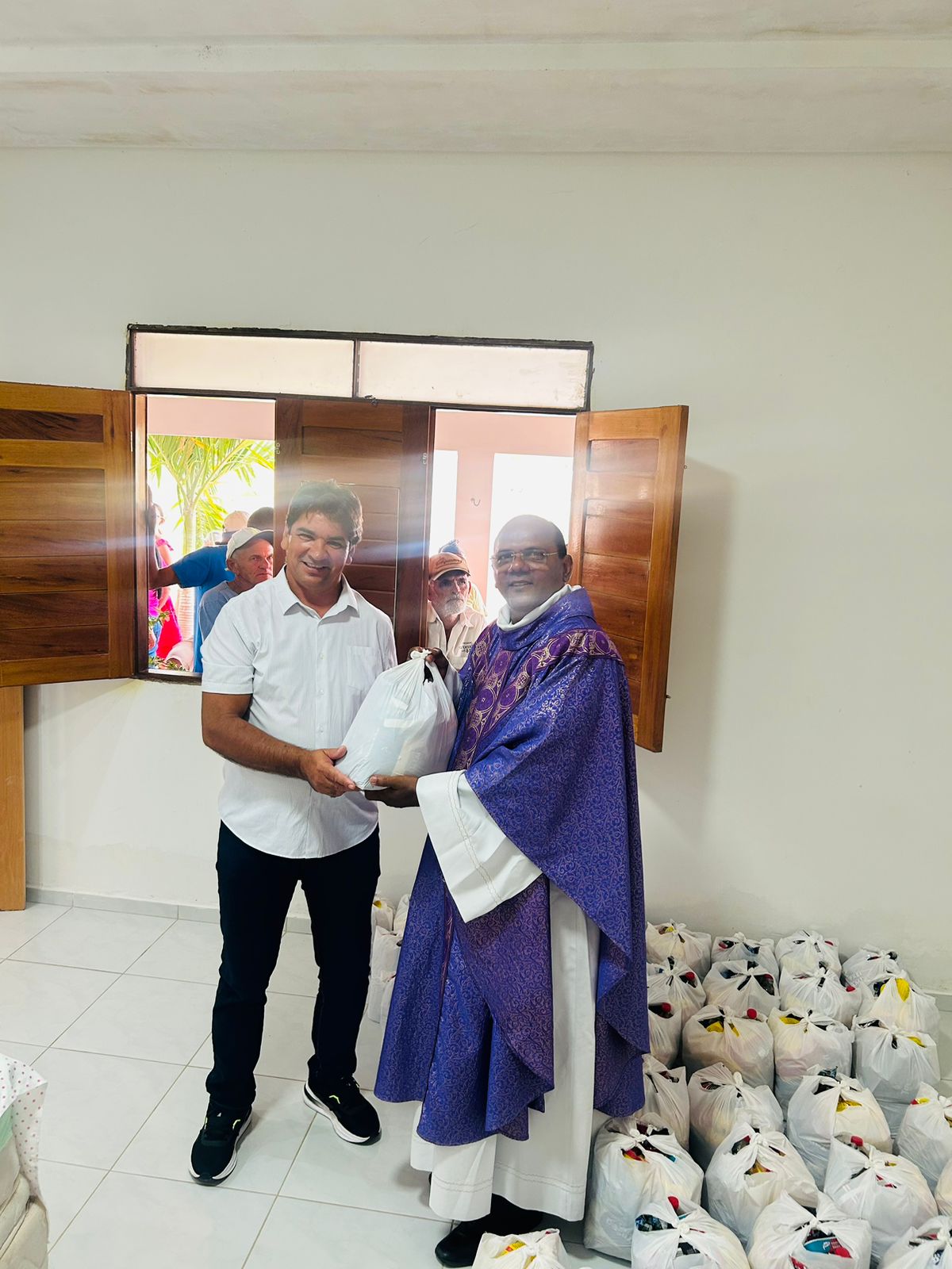 Durante a comemoração, que contou com a realização de uma missa solene, foram distribuídas mais de 250 cestas básicas a famílias em situação de vulnerabilidade social do município.