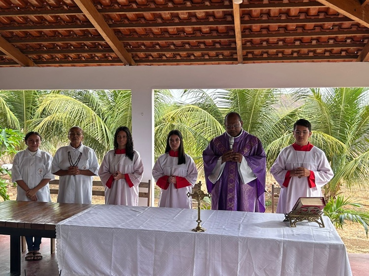 A missa com a entrega das cestas básicas foi realizada na residência do vice-prefeito – Foto: divulgação