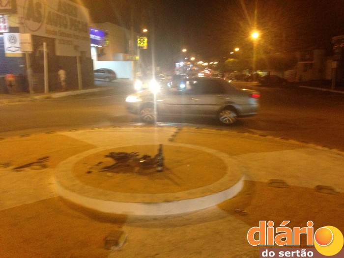 A ‘oferenda’ foi colocada na rotatória das duas ruas, uma delas dá acesso a Igreja Catedral, onde havia celebração especial em comemoração ao dia da padroeira.