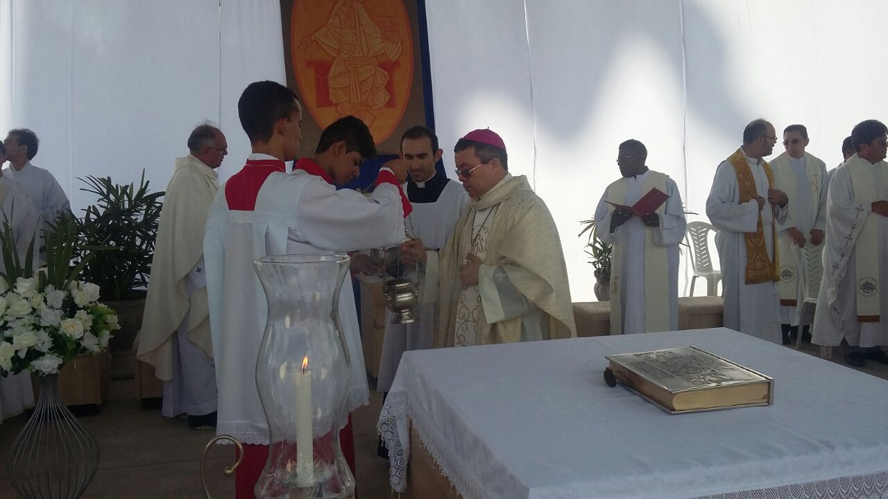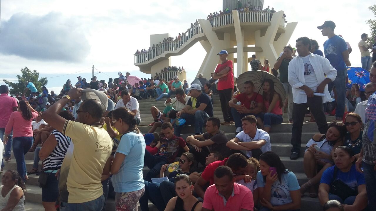 A missa especial aos pés da gigantesca estátua do Cristo Rei foi celebrada pelo bispo da Diocese de Cajazeiras, Dom Francisco de Sales.