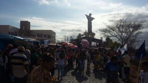 Os romeiros percorreram cerca de 10 km até a Serra do Cantinho onde fica a imagem do Cristo Rei, que mede 29 metros de altura.