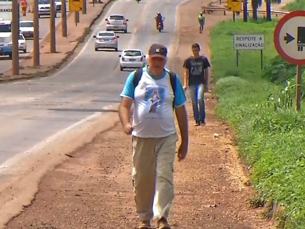 No último ano do pagamento da promessa, devoto passa por Mato Grosso. Ele já gastou 66 pares de tênis, foi roubado 23 vezes e viu 835 acidentes.
