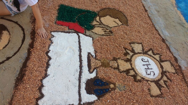 Tapetes coloridos e com símbolos eucarísticos, os fiéis capricham na confecção do material. Os cristãos usam geralmente pó de madeira, pó de café, sal, tinta, entre outros.