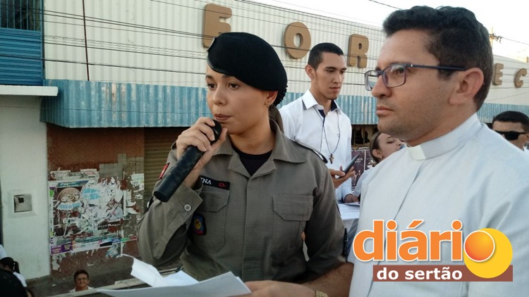 O evento, promovido pela Igreja Católica, tem como tema “Fraternidade e superação da violência” e objetiva buscar com a sociedade alternativas para que qualquer tipo de violência seja combatida. A Soldado Carolina, policial feminina do 14° BPM, representou a Polícia Militar na caminhada e durante uma das paradas do percurso, fez uma breve reflexão sobre a violência doméstica e familiar contra a mulher, como forma de sensibilizar a população para a construção e promoção da paz.