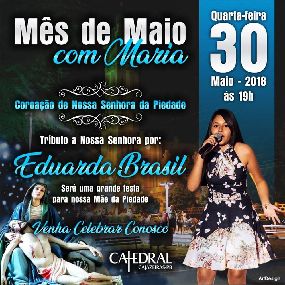 A ex-The Voice Kids, a sertaneja da Paraíba, Eduarda Brasil fará o encerramento do mês mariano em Cajazeiras.