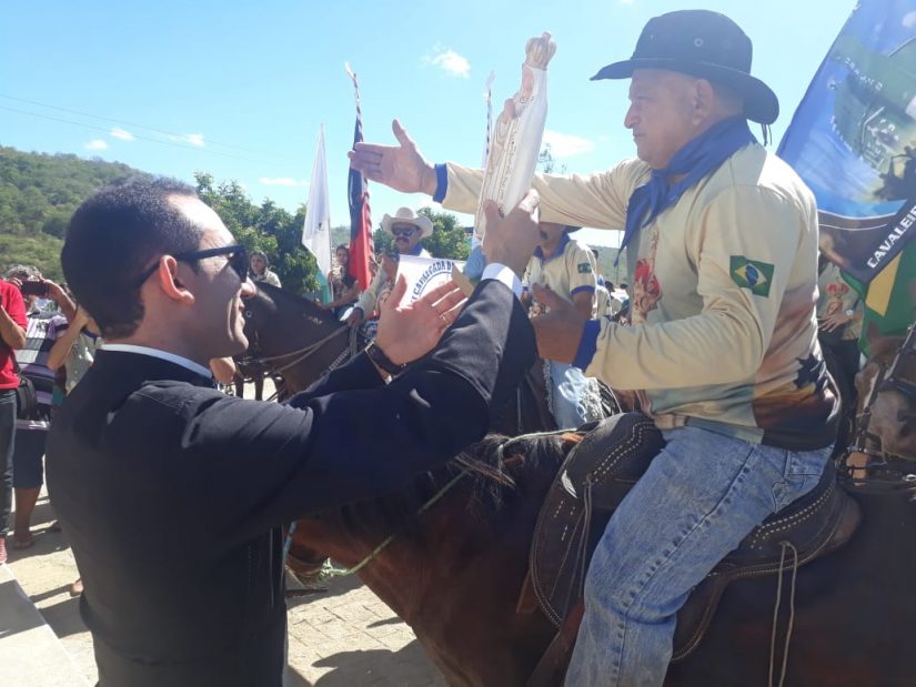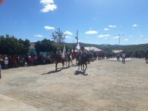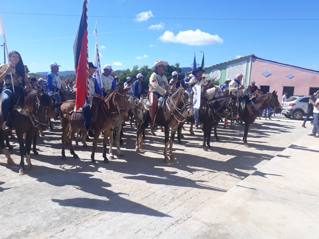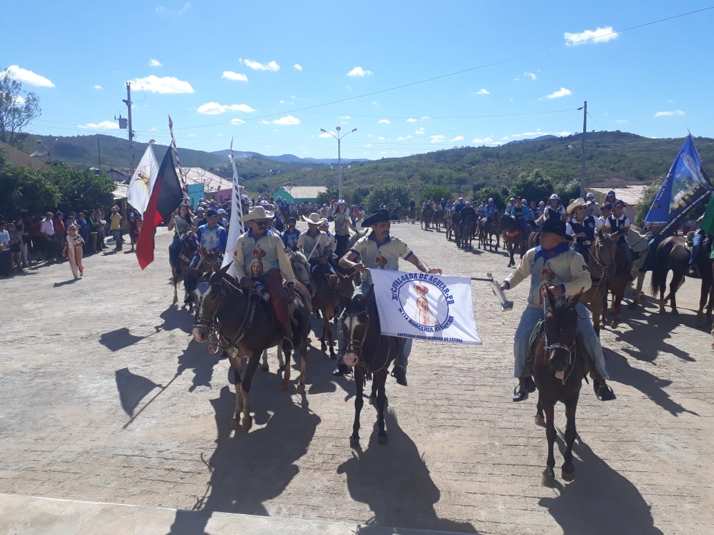 Uma das atrações é cavalgada, que está na sua XI edição e este ano reuniu mais de 100 cavaleiros que levaram a imagem de nossa senhora até a capela, onde foi celebrada a missa para todos os presentes.