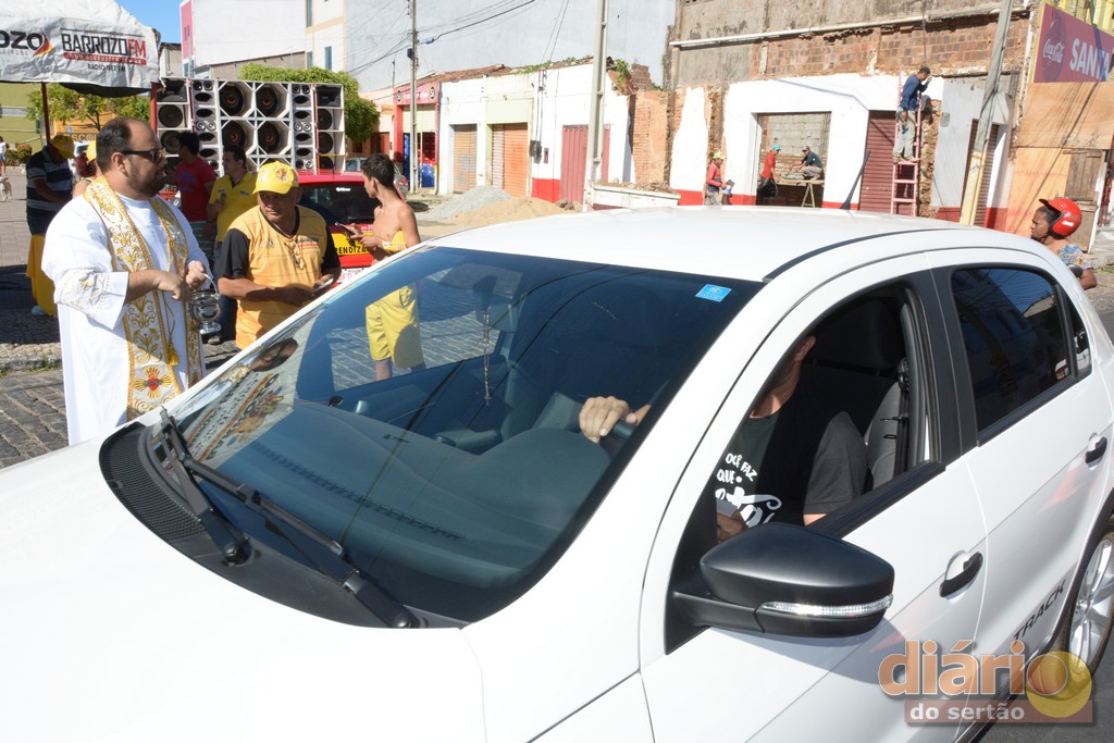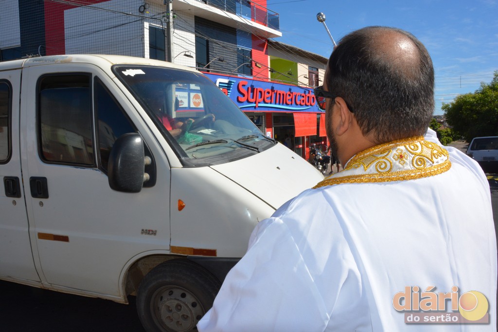 VÍDEO: No dia do padroeiro dos motoristas, padre benze veículos e condutores pelas ruas de Cajazeiras