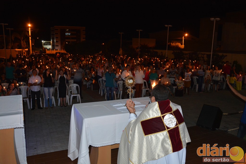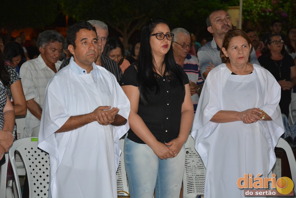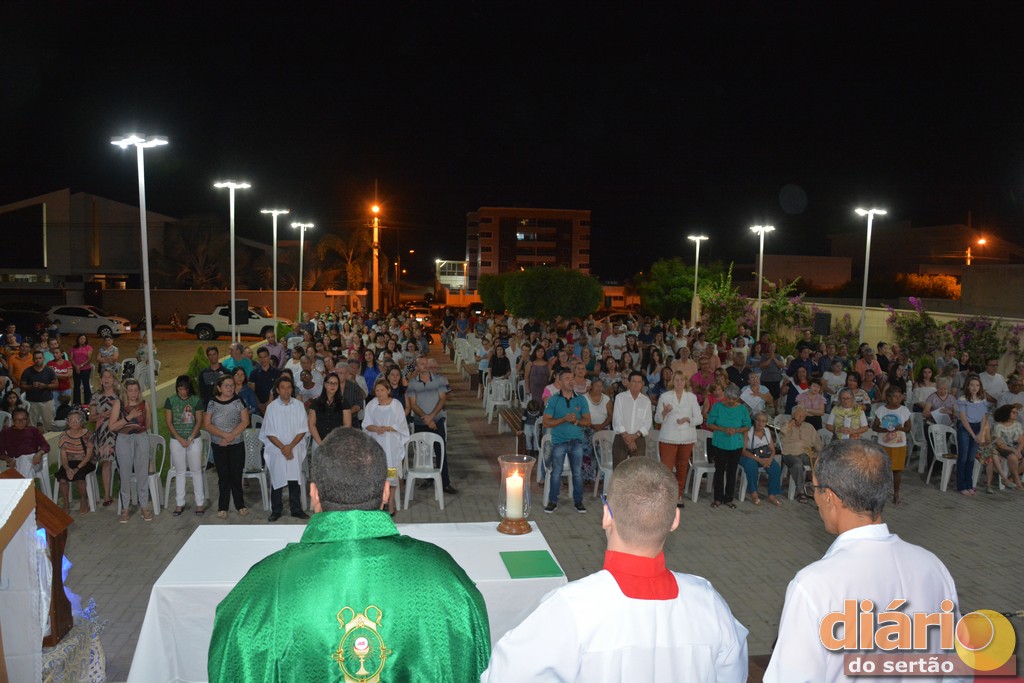 Com velas acessas, os fiéis receberam a benção. Em seguida, teve início a celebração solene da santa missa. Como marco do aniversário, a família idealizadora da Praça Frei Damião entronizou a imagem de Nossa Senhora da Luz na celebração.