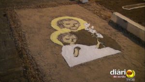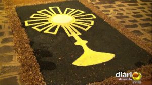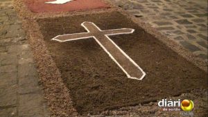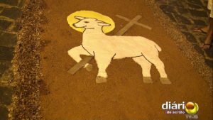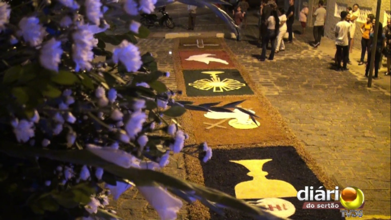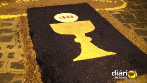 Estava tudo preparado para a chegada do santíssimo, os católicos prepararam belíssimos tapetes coloridos como forma de embelezar ainda mais a celebração.