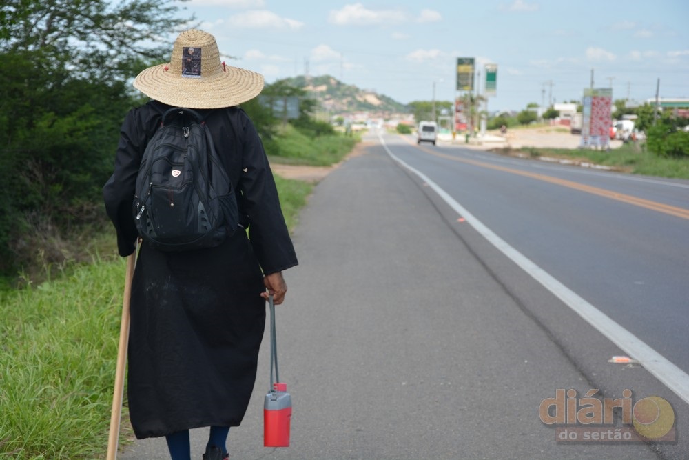 Neste final de semana, o peregrino chegou à região de Cajazeiras e seguiu sua viagem, que deve durar cerca de 12 dias, até chegar ao Horto do ‘Padim Cíço’.