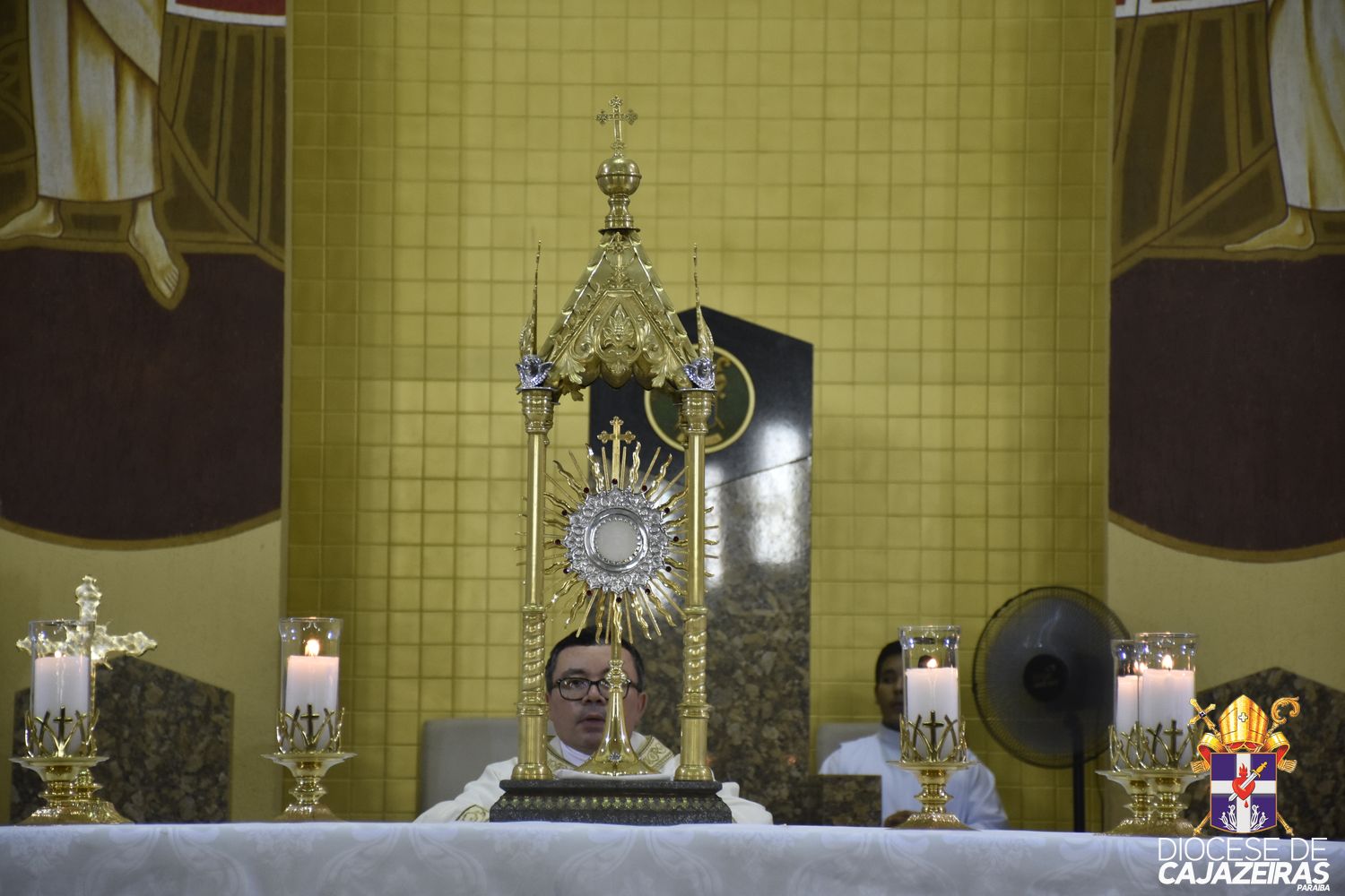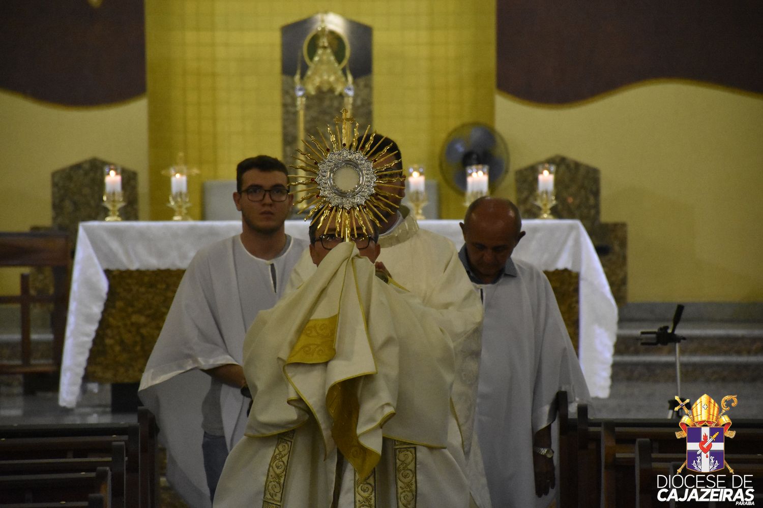 Na missa que foi transmitida ao vivo pela TV Diário do Sertão, Dom Francisco de Sales Alencar Batista conduziu o Santíssimo Sacramento até a porta da Catedral para abençoar a população.