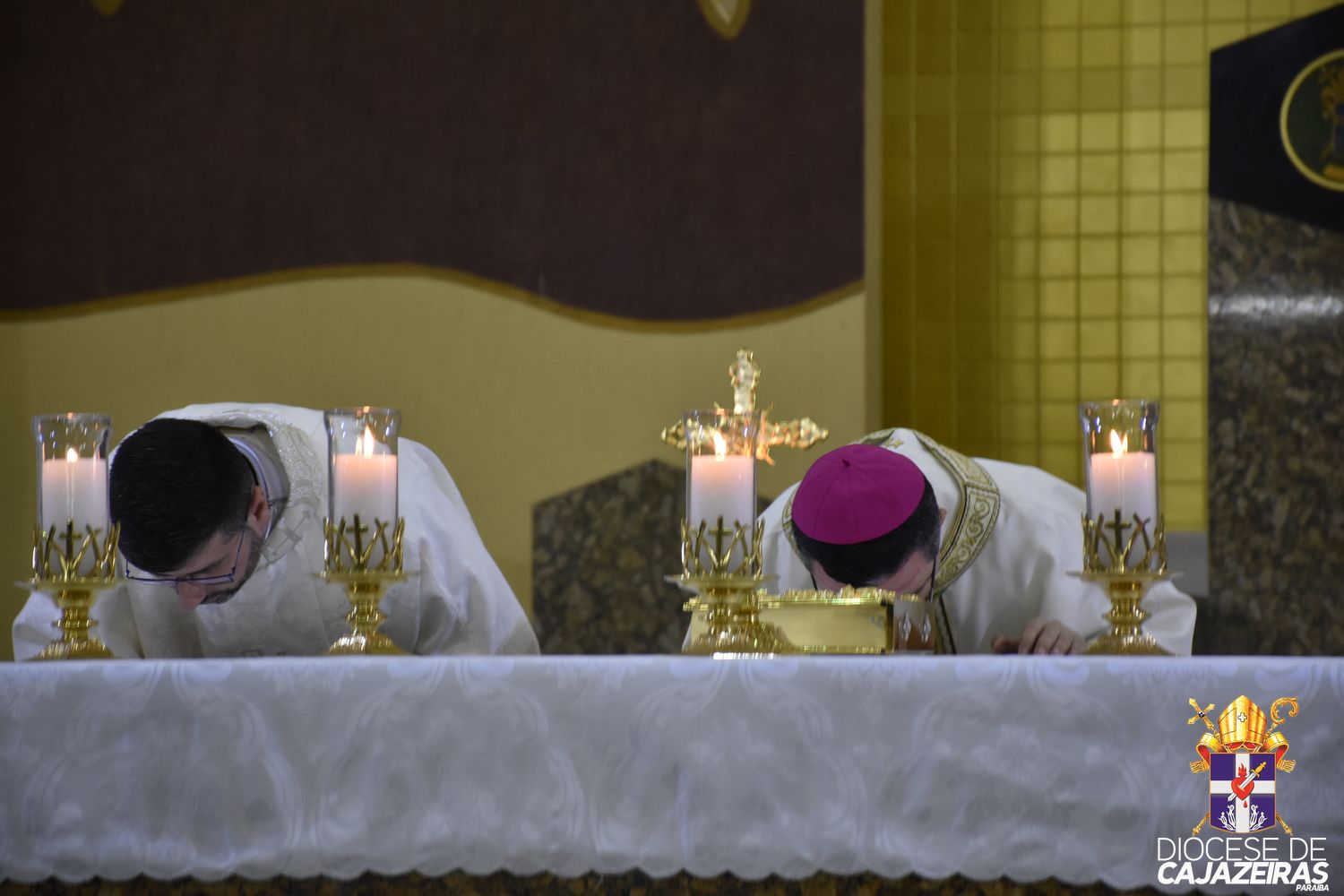 - Dom Francisco de Sales e Padre Severino Neto beijam o altar (12/04/2020 – PASCOM Diocesana)