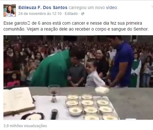 Um garoto de apenas 6 anos está comovendo as redes sociais com um vídeo postado mostrando sua primeira comunhão.