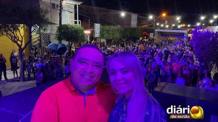 Prefeito Marcos Eron e sua esposa, Claudiana Alves, secretária de Ação Social do município de Monte Horebe – foto: TV Diário do Sertão