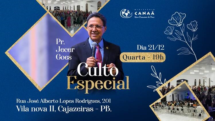 Na ocasião, estará presente e será o ministrante da noite, o pastor presidente do ministério, Jecer Goes. Ele é fundador e líder do Ministério Canaã.
