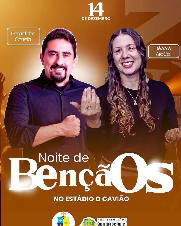 O prefeito Allan Seixas (MDB), de Cahoeira dos Índios, anunciou a vinda do missionário e pregador Geraldinho Correia, da Comunidade Católica Missão Resgate, ao município. Em suas redes sociais, o gestor disse que o evento irá acontecer no dia 14 de dezembro “em uma noite de bençãos”, no estádio O Gavião. O missionário estará acompanhado de sua esposa, Débora Araújo.