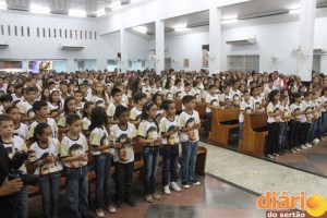 Na oportunidade, 149 crianças receberam a primeira eucaristia, numa linda celebração com cânticos e louvores, com a participação de um grande número de fieis.