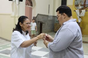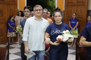 Como todos os dias neste mês de maio, o noitário mariano homenageia uma família da paróquia e também um representante em nome de todos os homenageados. Acompanhados dos filhos Marianny Oliveira e João Pedro, o casal Petson Santos e Josirleide Oliveira (diretores do Diário do Sertão) foram homenageados como ‘Família Devota de Nossa Senhora’.