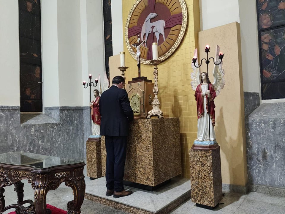 Em um momento simbólico, ele rezou diante do túmulo de Dom Zacarias Rolim de Moura, um dos bispos mais importantes da história da Diocese – Foto: divulgação/Diocese de Cajazeiras