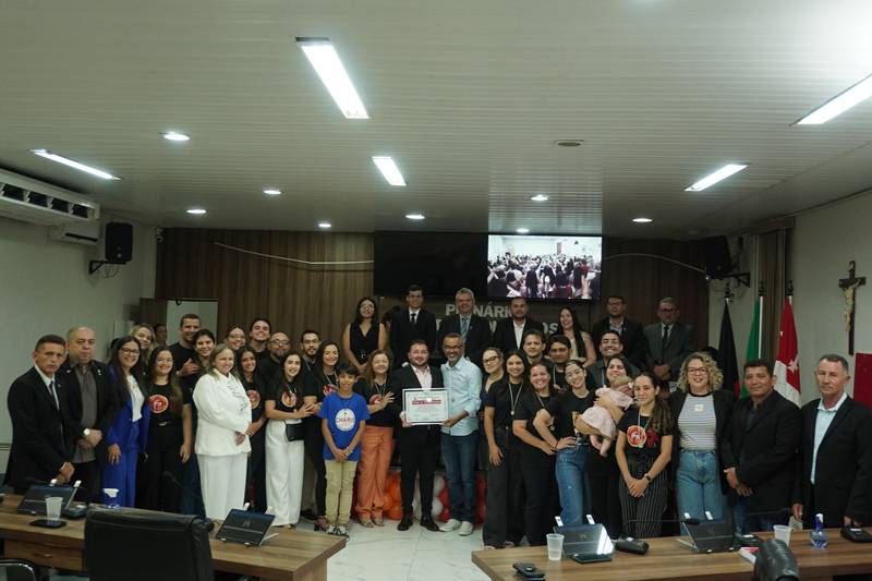 No plenário, muitos membros da Obra Álegrate participaram da sessão. Ao final, todos se reuniram e realizaram um momento oracional com os vereadores e servidores da Casa Legislativa.