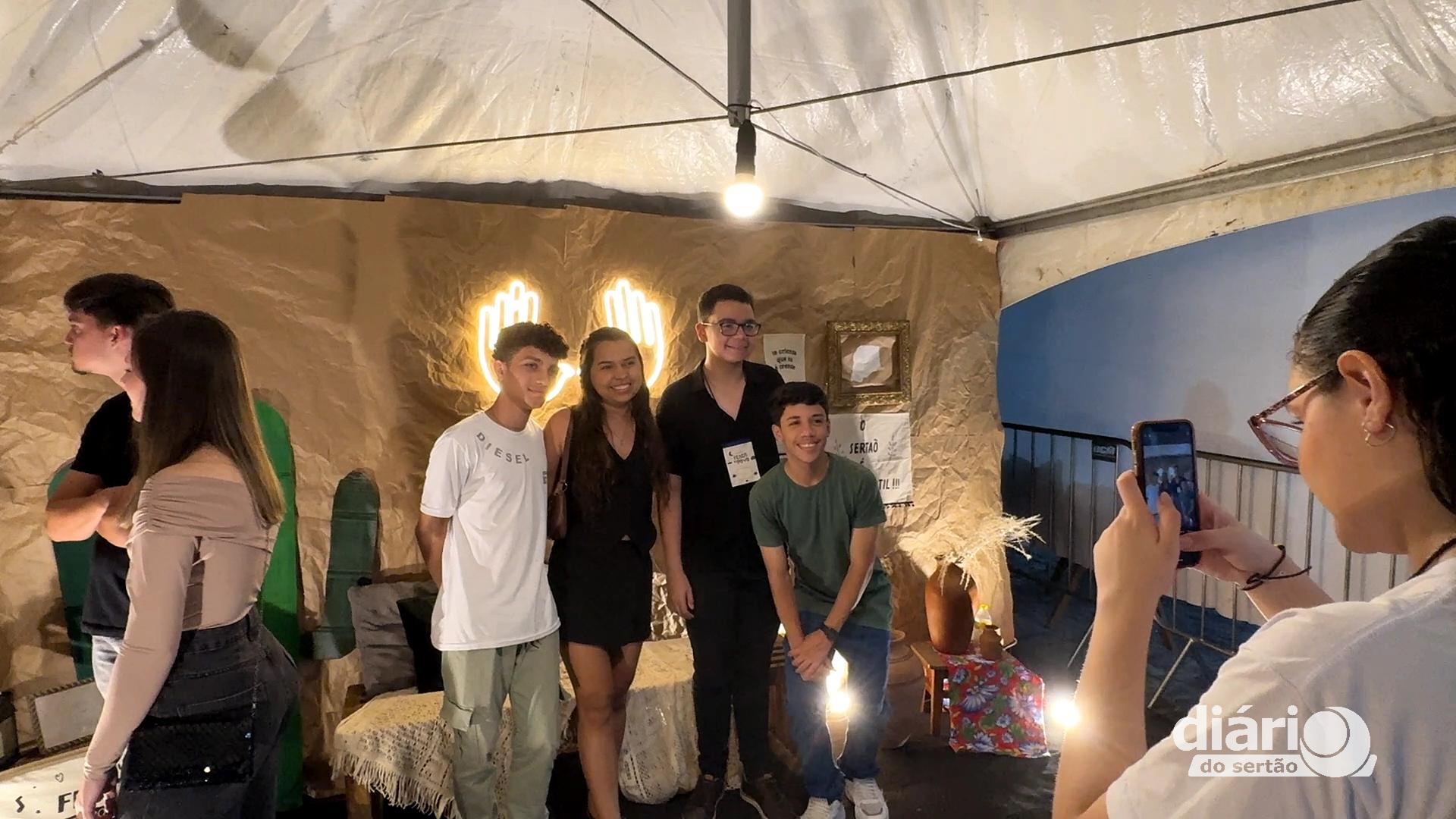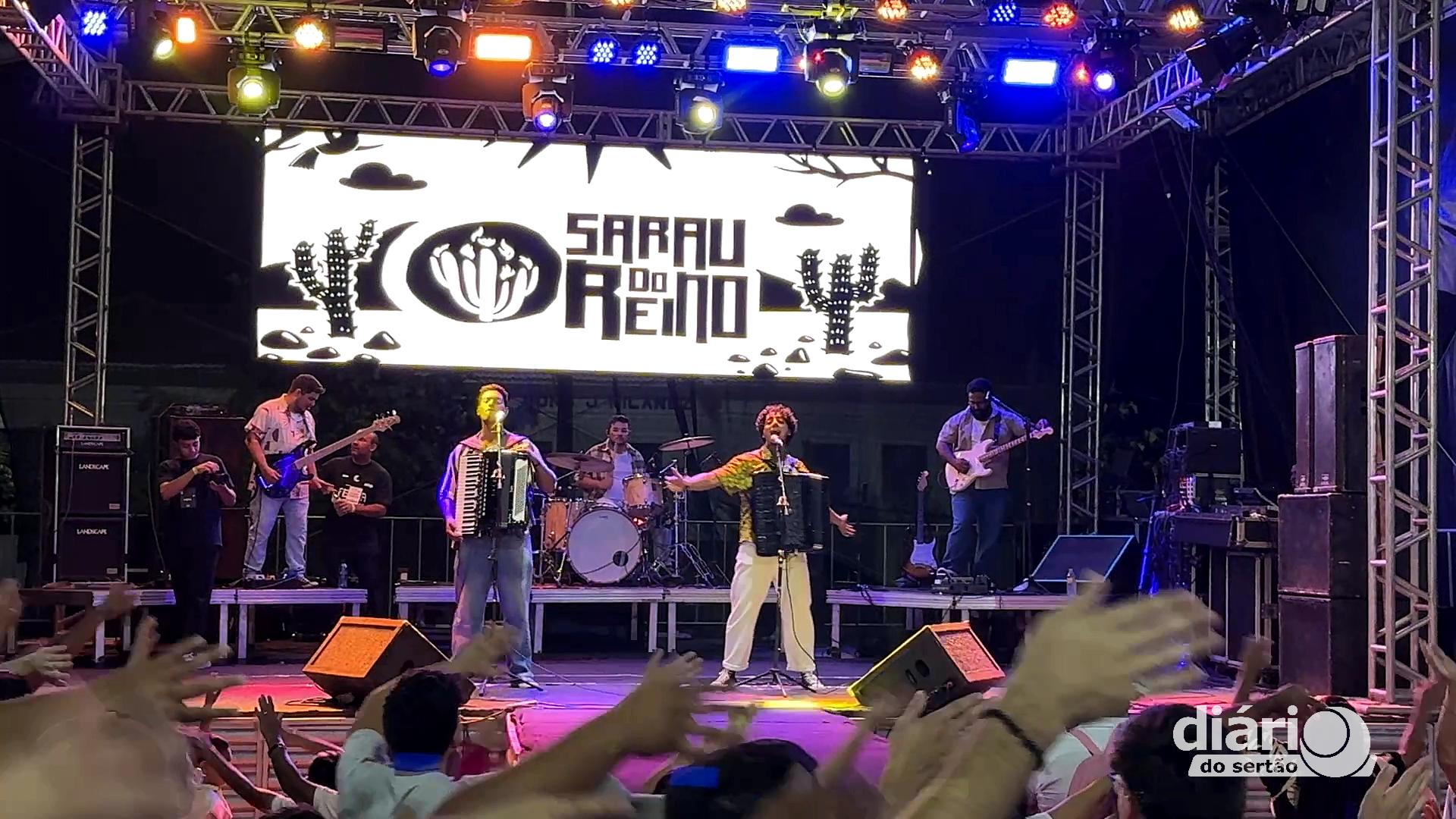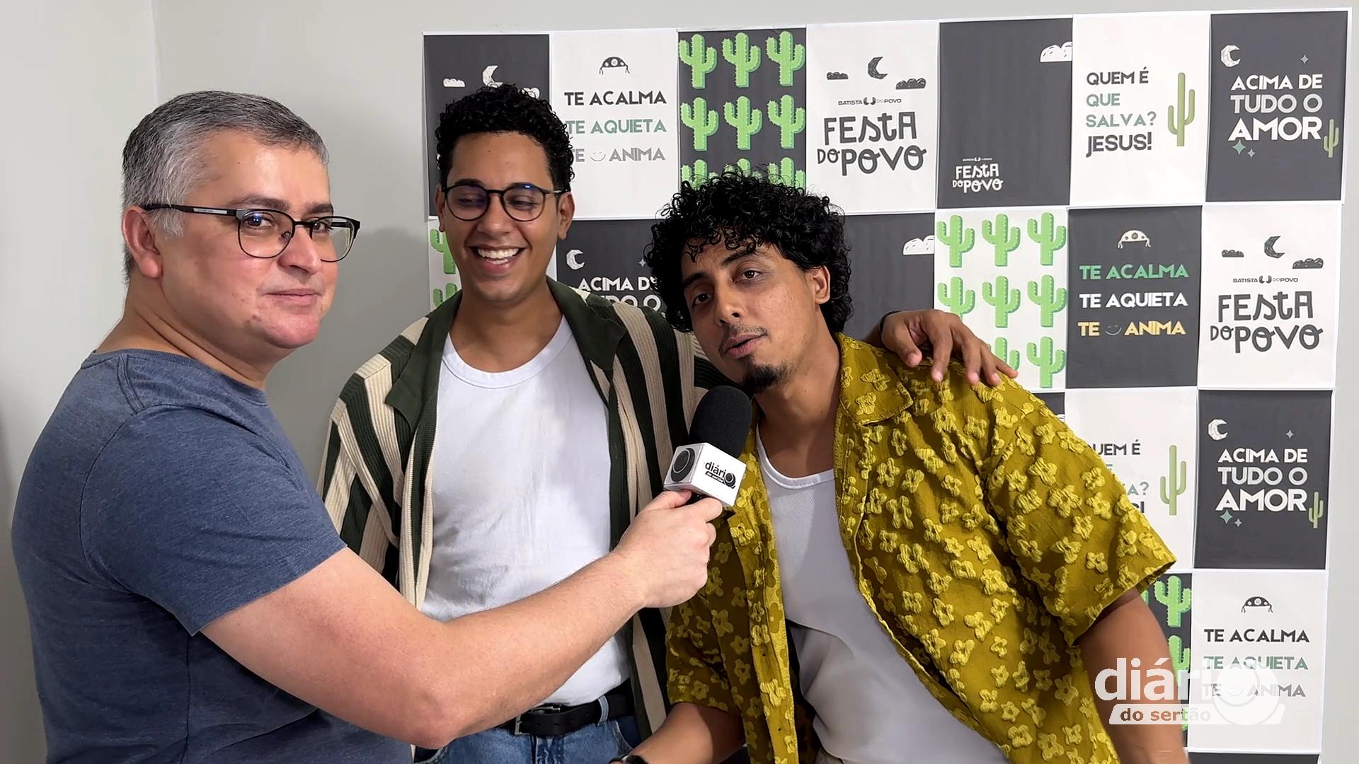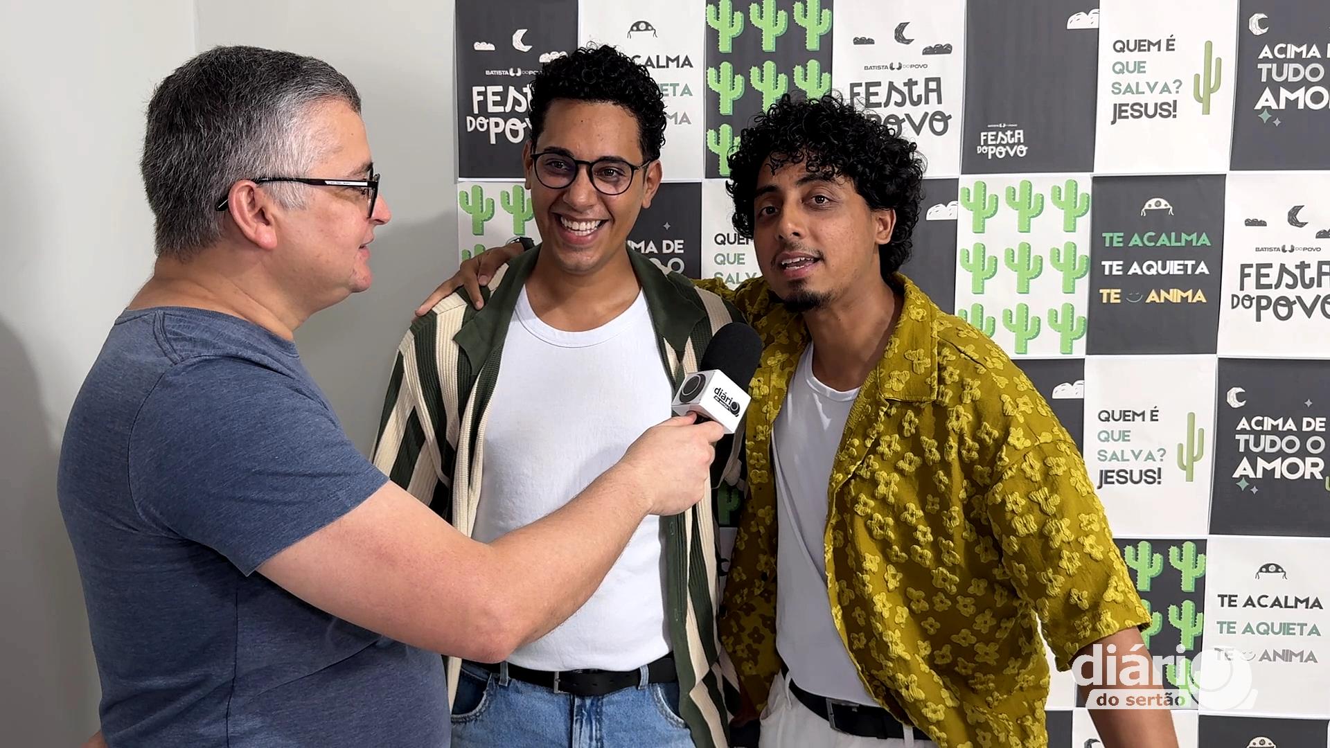 Louvor com ritmo Nordestino – Uma das atrações mais aguardadas da noite foi a banda Sarau do Reino, com os cantores Jonathan e Júnior. A dupla, que possui raízes nordestinas e sulistas, falou sobre a inspiração em mesclar a música gospel com o ritmo da região. “Pra gente é o maior prazer assim, poder trazer assim os louvores com algo da nossa nação, né? Da nossa região, da nossa nação,” disseram.