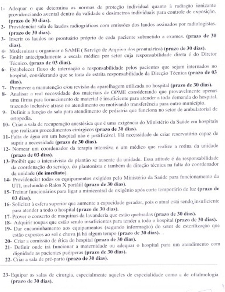 “São recomendações que temos interesse em adequar ao serviço. Mas o hospital continua em seu pleno atendimento sem perda e sem danos a saúde”, tranquilizou a diretora.