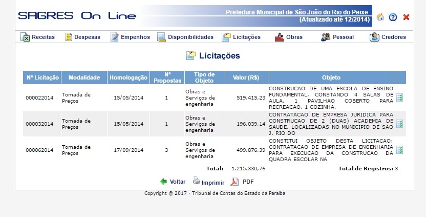 A mesma empresa aparece como ganhadora de mais duas licitações, uma no valor de R$ 519.415,23 e outra no valor R$ 499.876,39.