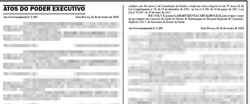 A substituta para o cargo da saúde na cidade de Cajazeiras saiu no mesmo diário do Governo da Paraíba.