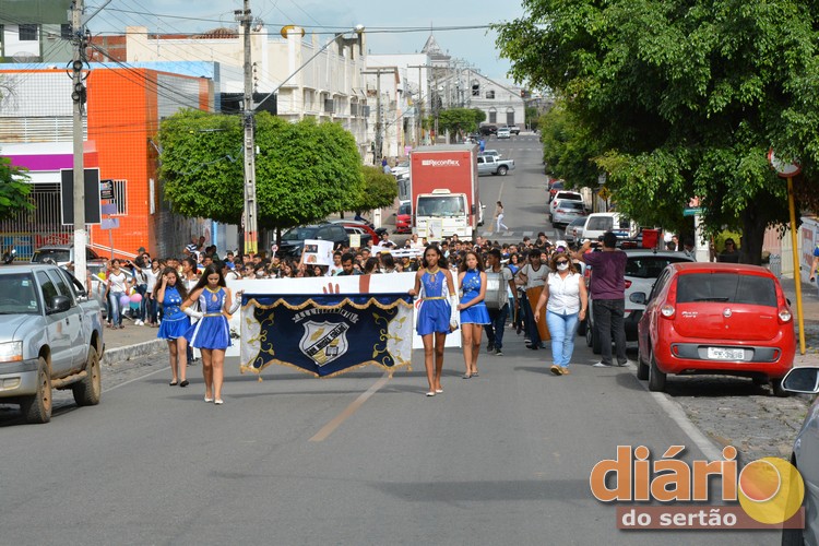 Centenas de alunos desfilaram pelo Centro com banda, faixas e cartazes