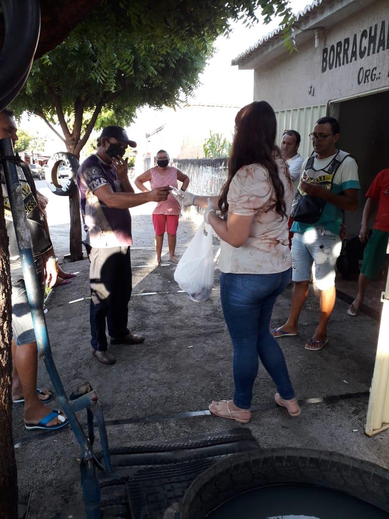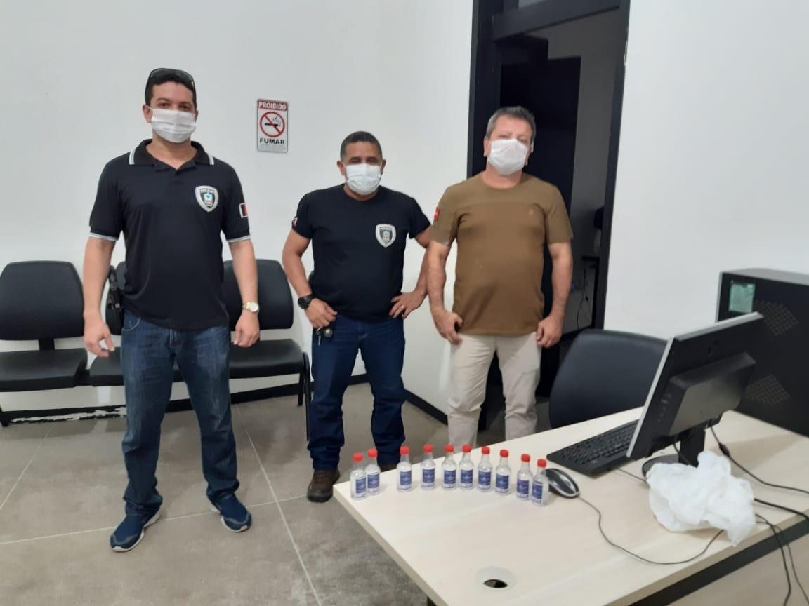 Além de famílias carentes, receberam também o álcool em gel o Batalhão de Trânsito da Polícia Militar e a Delegacia de Polícia Civil.