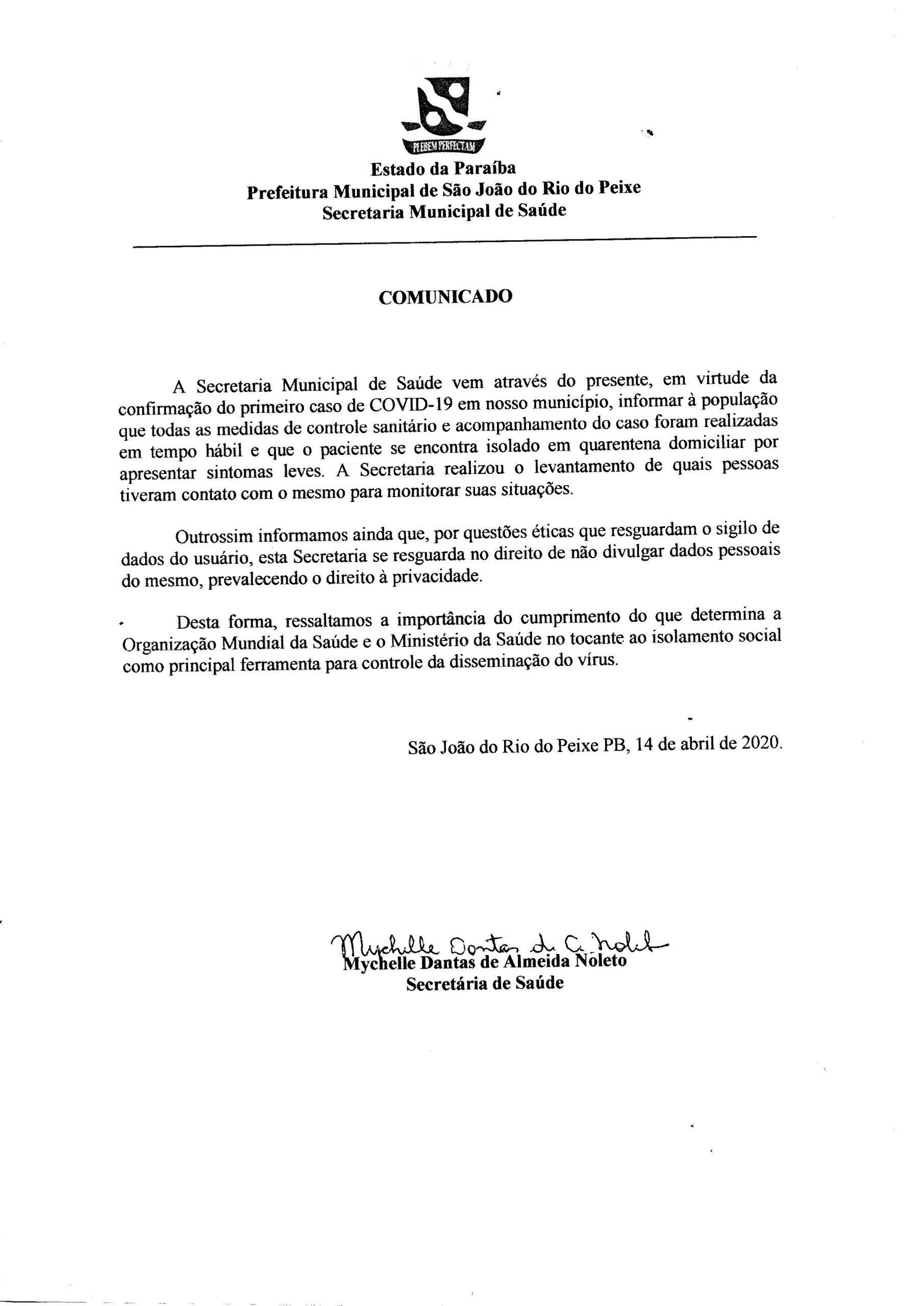 Essa foi a nota divulgada pela Secretaria de Saúde de São João do Rio do Peixe