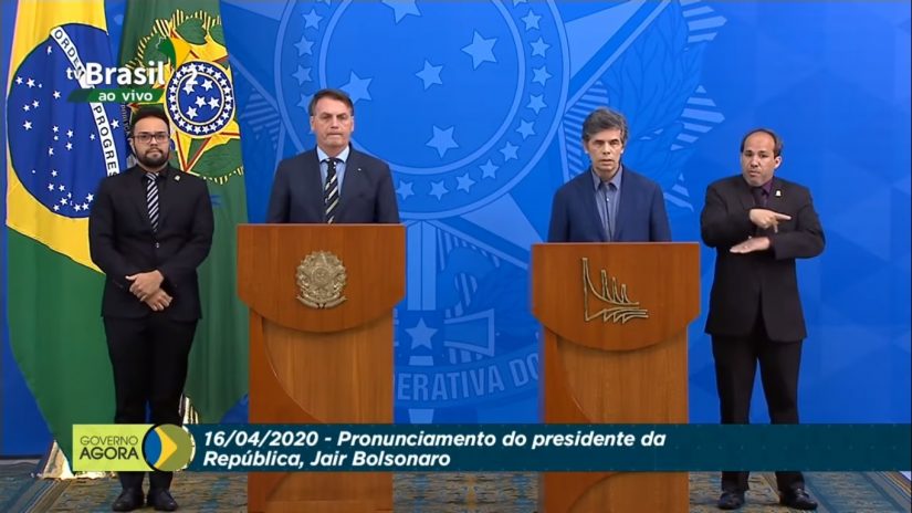 Após a fala de Bolsonaro, novo ministro Nelson Teich falou à imprensa e disse que não tomará nenhuma ‘definição brusca’ acerca do isolamento social. “A parte do distanciamento e do isolamento, o que acontece? Não vai haver qualquer definição brusca, radical, do que vai acontecer. O que é fundamental hoje? Que a gente tenha informação cada vez maior sobre o que acontece com as pessoas, com cada ação que é tomada. Como a gente tem pouca informação, como é tudo muito confuso, a gente começa a tratar ideia como se fosse fato e começa a trabalhar cada decisão como se fosse ‘tudo ou nada’ e não é nada disso”, disse Nelson Teich.