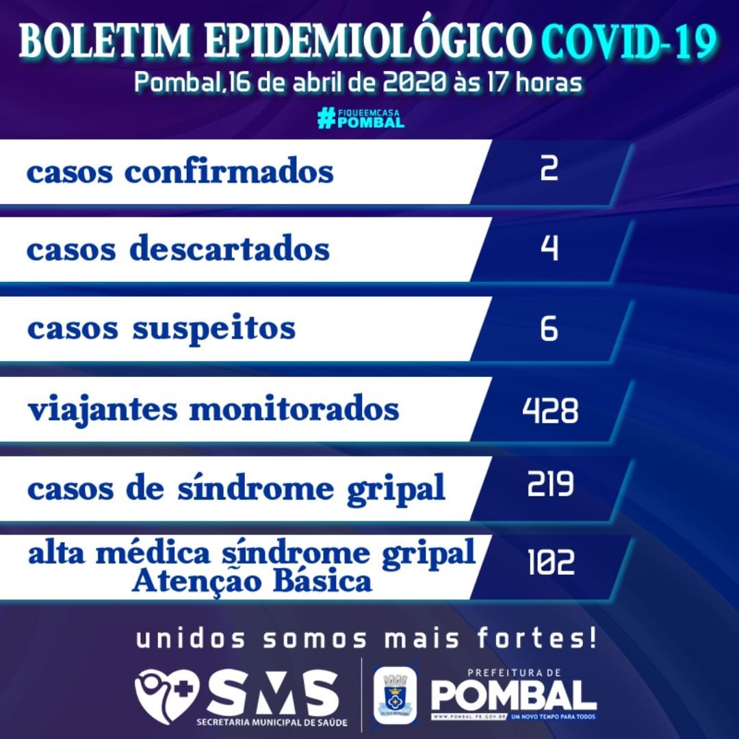 A Prefeitura Municipal de Pombal, no Sertão do estado, através da Secretaria Municipal de Saúde, informou na tarde desta quinta-feira (16) que 2 casos de Covid-19, doença causada pelo novo coronavírus, foram confirmados no município.