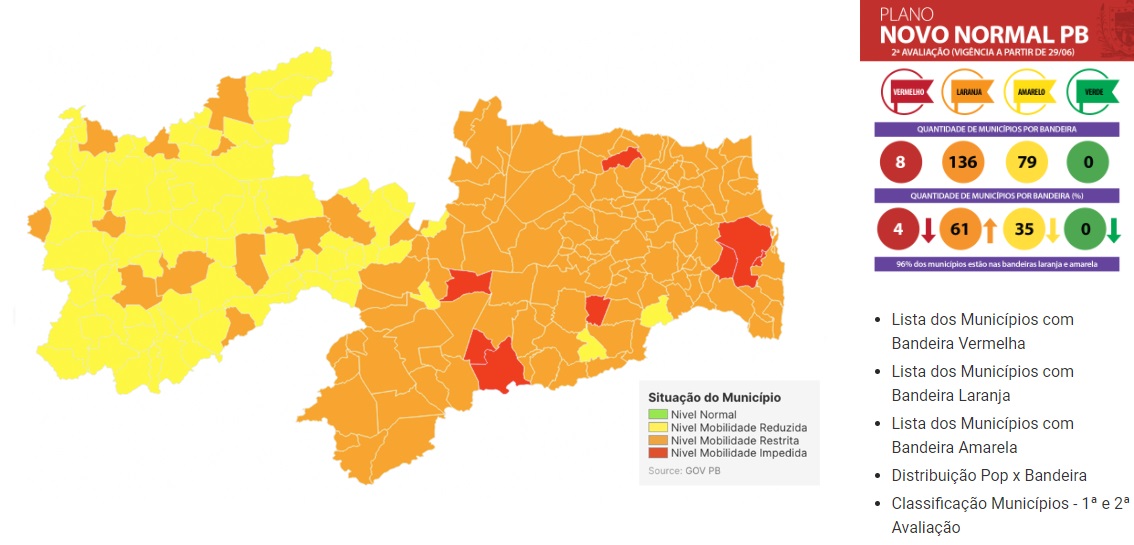Os municípios com bandeira laranja foram Marizópolis, Santa Cruz e Nazarezinho. Já as cidades de Sousa, São José da Lagoa Tapada, São Francisco, Lastro, Aparecida e Vieirópolis, foram classificadas com bandeira amarela pela secretaria estadual.