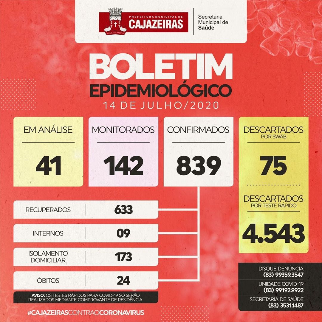 Nesta terça-feira (14), o município de Cajazeiras bateu o recorde de casos confirmados de Covid-19 em 24 horas. De acordo com o boletim epidemiológico da Secretaria de Saúde do município, foram registrados 39 casos da doença causada pelo novo coronavírus.