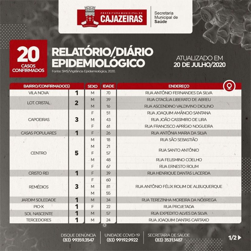 O boletim epidemiológico da Secretaria de Saúde de Cajazeiras, emitido nesta segunda-feira (20), confirmou o 27º óbito por Covid-19 no município.