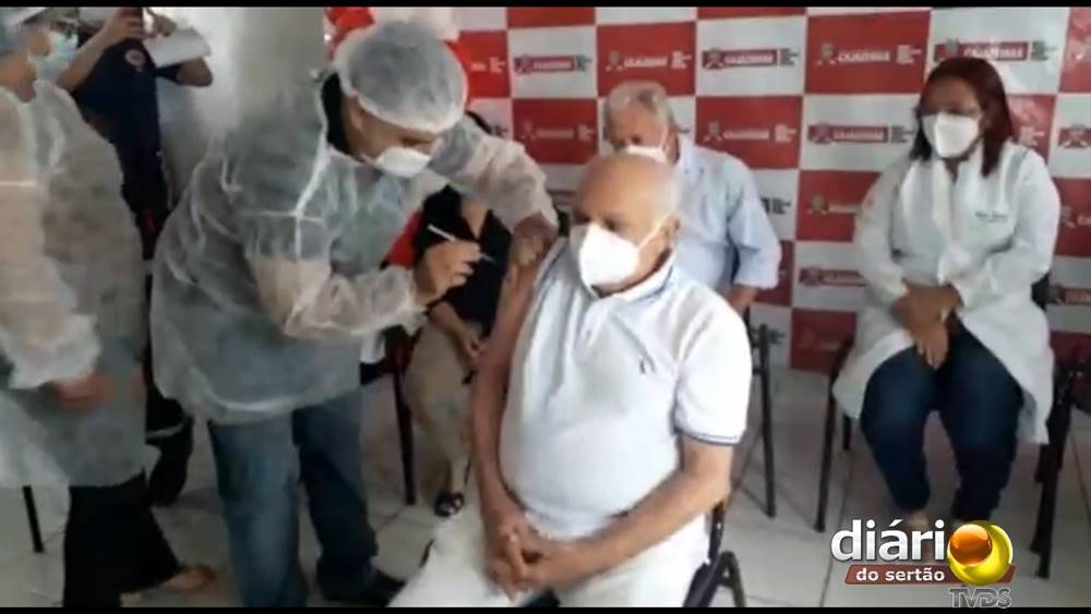 Um dos mais experientes e respeitados médicos da Paraíba, Dr. Deusdedit Leitão, da cidade de Cajazeiras, foi o primeiro a receber a dose da CoronaVac na sede do Centro de Referência de Imunização do município, por volta das 8h15 desta quarta-feira (20).