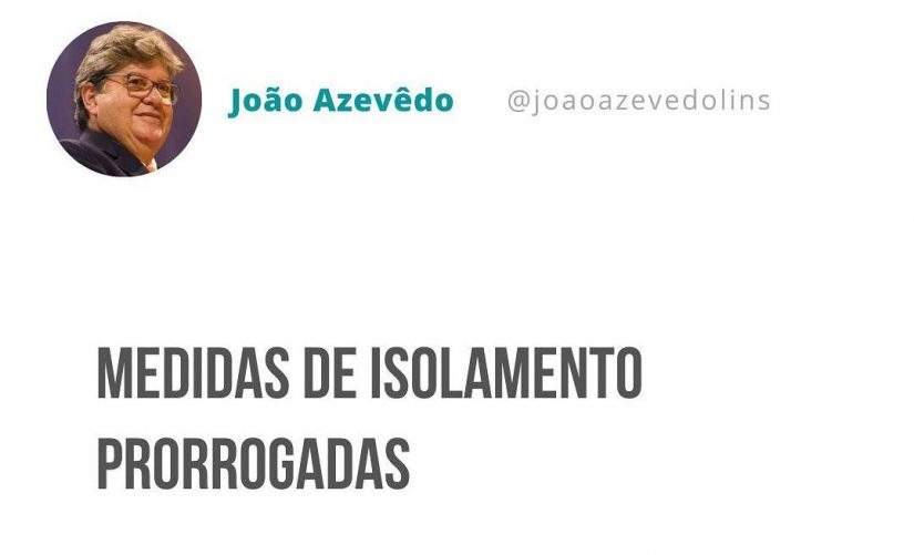 João Azevêdo prorroga medidas de isolamento social e suspende aulas presenciais até dia 3 de maio
