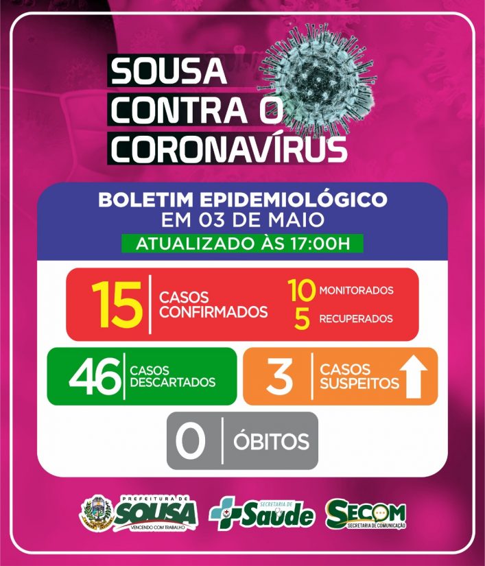 O Boletim Epidemiológico divulgado às 17h deste domingo (03) aponta que os casos confirmados permaneceram em 15, mas, houve um aumento no número de casos suspeitos. Neste sábado (02) era apenas um caso, mas agora são três.