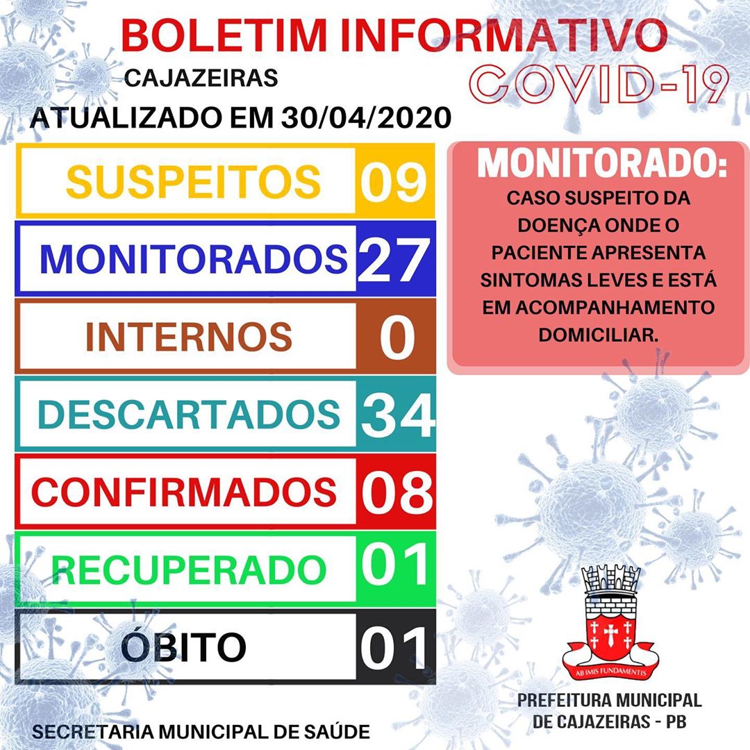 O município de Cajazeiras, segundo dados SES ocupa a 13ª posição no número total de casos confirmados, entre todas as 223 cidades do estado.