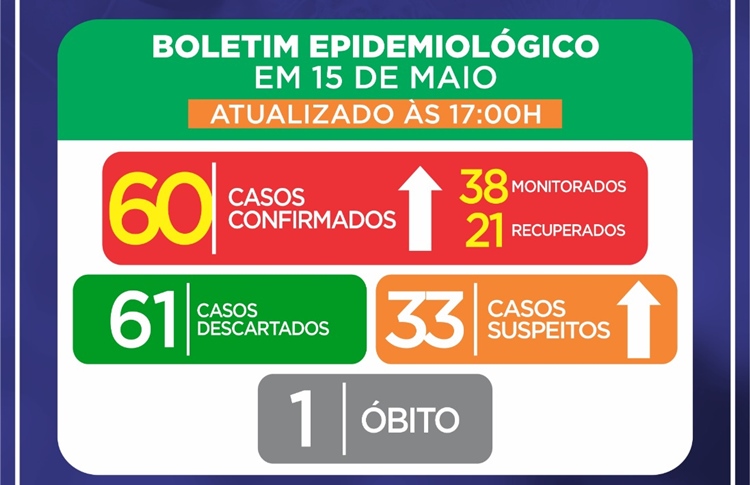 Segundo dados da secretaria de saúde do município, os casos confirmados que eram 53 nesta quinta-feira (14) aumentaram para 60 nesta sexta-feira (15). Dos 60 casos, 38 estão monitorados, 21 recuperados e um óbito.