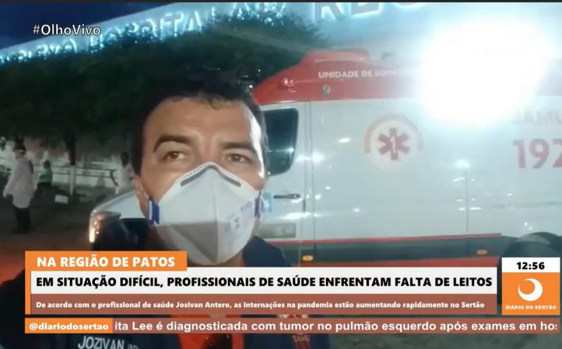 Josivan é jornalista e também socorrista do SAMU da cidade e contou que o sistema de saúde de Patos está quase em colapso. “Nós temos o Hospital Regional de Patos com a lotação acima da sua capacidade. Tivemos que transferir pacientes para João Pessoa. A UPA estava quase lotada.”, relata o profissional.