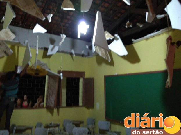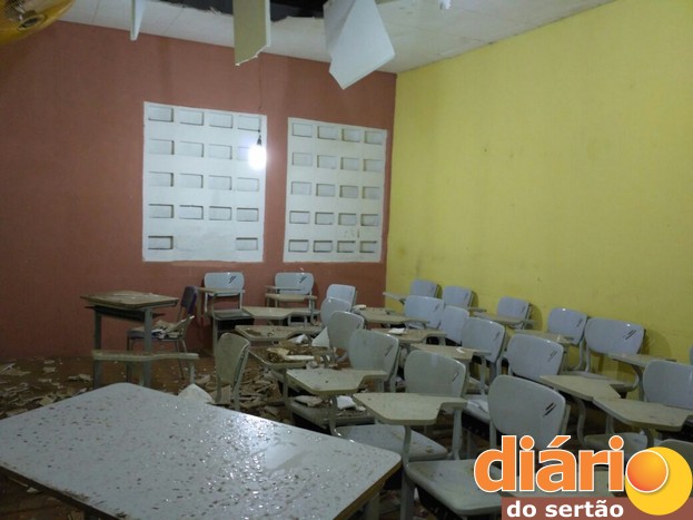 Foram apenas 40 minutos de chuva nessa quinta-feira (20), mas o suficiente para derrubar o forro da escola Joaquim Nabuco, destruir parte de um circo, arrancar o teto de um posto de combustível, quebrar vidros do prédio de uma emissora de rádio e causar estragos em outros prédios da cidade.