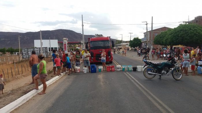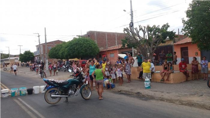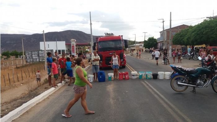 Com baldes os moradores fecharam todas as entradas e saídas da cidade e reclamaram também dos carros pipas, que são insuficientes para abastecer a cidade.