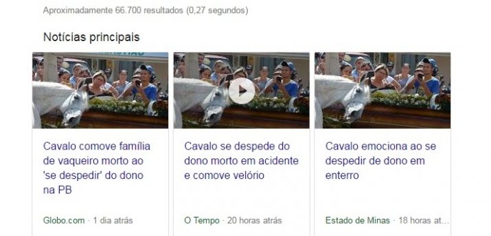 Mais de 66 mil sites do Brasil inteiro destacou a emocionante despedida do cavalo ‘Sereno’ ao seu dono, o jovem Wagner Figueiredo de Lima, 34 anos, sepultado nessa terça-feira (3), em Cajazeiras, no Sertão da Paraíba. Os dados são do site Google.