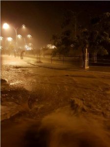 O Muro de uma empresa desabou e o Canal do Frango inundou. A Defesa Civil de Patos foi acionada.
