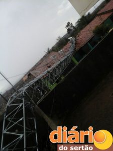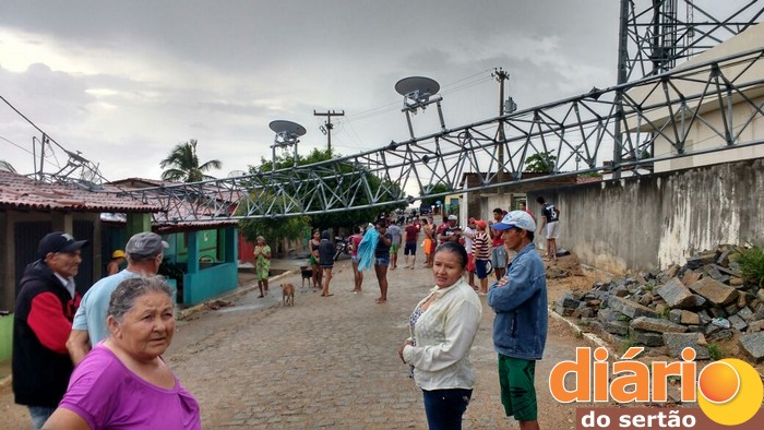 UI: Torre com quase 40 metros de empresa de Cajazeiras cai em cima de residências em comunidade do Sertão e causa alvoroço. Fotos